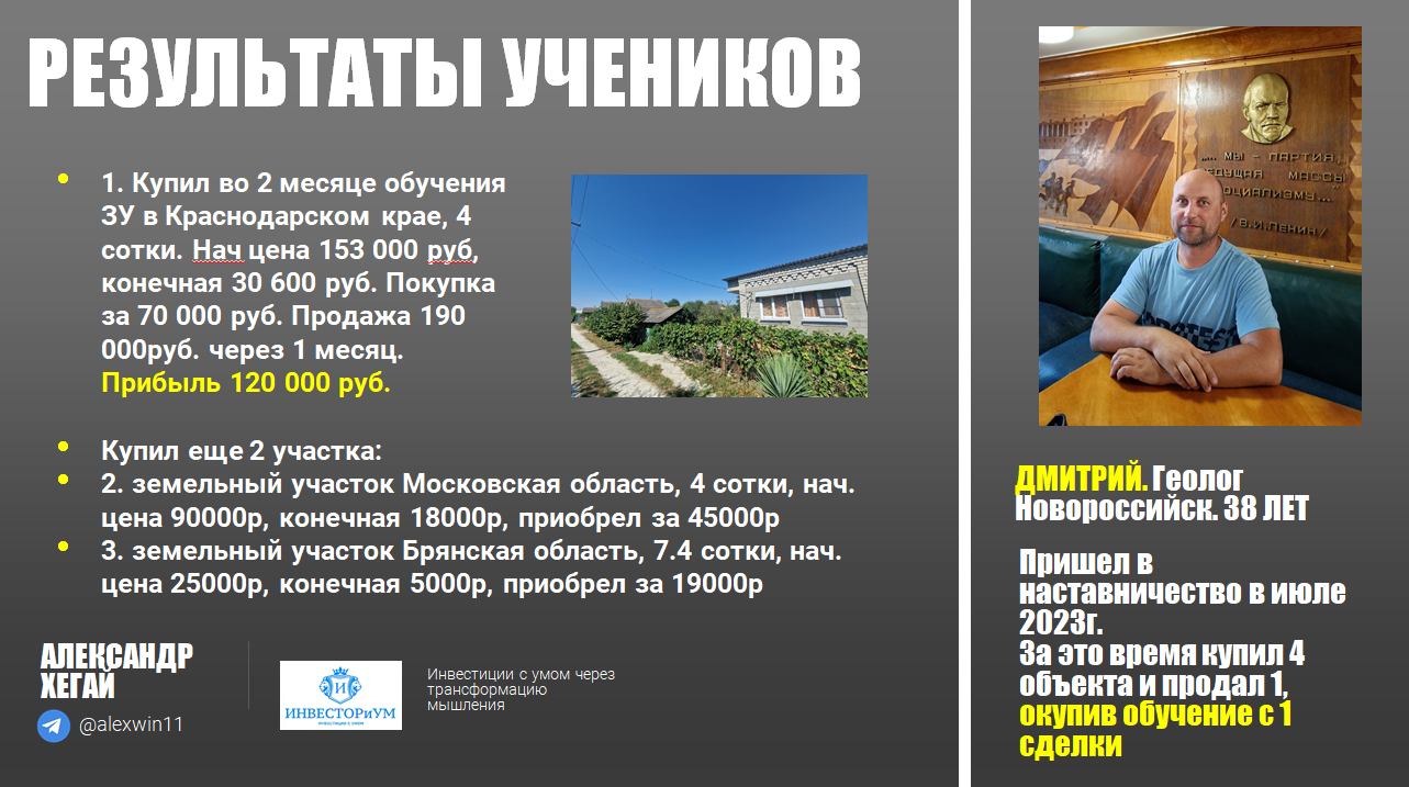 - Пройдите авторскую программу Александра Хегая, инвестора с 10-летним опытом, и выйдите на результат уже с первой сделки.